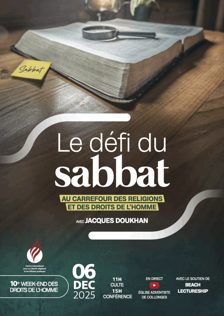 Le sabbat 6 décembre 2025 aura lieu le 10e week-end des droits de l’homme. Collonges organise, avec le soutien de Beach Lectureship, deux messages ; un au moment du culte à 11h00 et une deuxième conférence à 15h00.