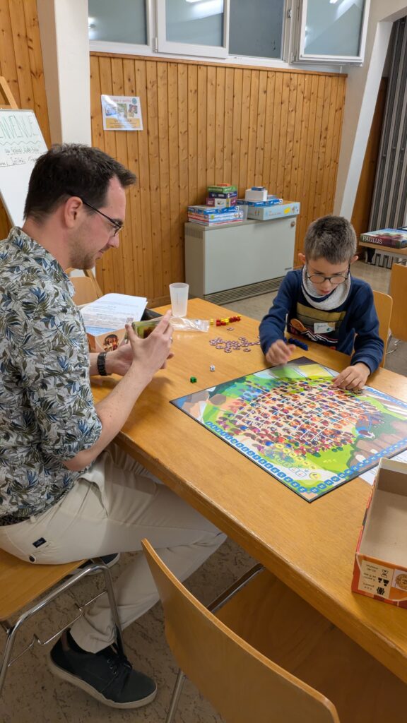 Gland – Samedi 4 octobre 2025. La fourmilière s’active. Le fléchage est placé, les affichettes d’information sont scotchées, les gâteaux et boissons prennent place sur le comptoir, la zone pour les tout-petits se déploie. Mais les éléments de base restent d’une simplicité déconcertante : des tables et des chaises, ce sont les clés toutes simples pour se rassembler autour d’une activité qui parle à tous : le jeu de Société.